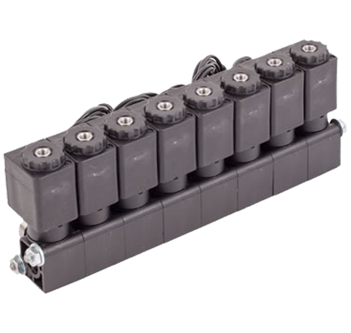 The 3953 Series is a compact, stackable version of the 3853 Series. This compact series features fully encapsulated coil, spring compensated plunger seats for long life, and a miniature stackable composite valve body, allowing you to mix-and-match valves to meet your specifications. Available in seven orifice sizes, this valve is offered in both 2-way and 3-way normally open or normally closed functions. With a body constructed from media-compatible DuPont™ Zytel® FE 5105, you can choose between a brass/stainless steel or all stainless steel pilot design along with optional sealing materials and a nylon-encapsulated coil. Our composite material is FDA approved.