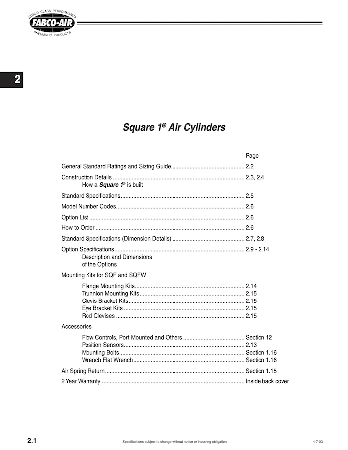 The Square 1 also comes pre-lubed with Magnalube-G® Teflon™-impregnated grease to resist corrosion and moisture. Bore sizes range from ¾ to 2 inches and strokes up to 6 inches, and operating air or hydraulic pressure is 150 psi.
