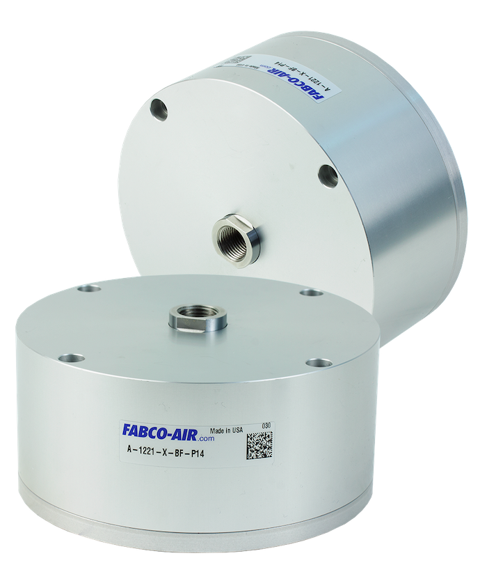 Pancake air cylinders are available in eight bore sizes from one-half to four inches and stroke lengths to four inches, providing excellent stroke and rod support in a small height package. The cylinder line offers pressure ratings to 250 psi pneumatic and 500 psi hydraulic service. Select from a wide range of options including a magnetic piston for cylinder position sensing or a non-rotating unit with internal pins to ensure proper rod orientation. Custom designs are also available. Each Pancake air cylinder comes pre-lubed with Magnalube-G® — a Teflon™ impregnated grease that resists corrosive moisture, water and oil separation.