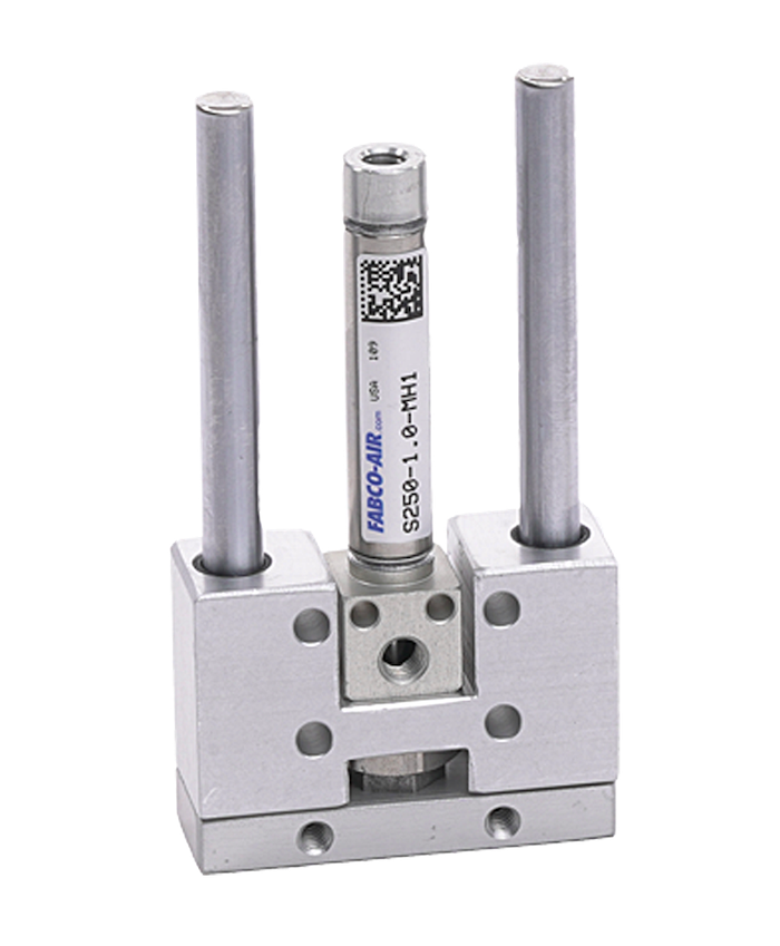 For applications where extreme precision is not required, this family of single- and dual bearing linear slides uses replaceable air cylinders to keep costs in line. The “L” Series Pneumatic Linear Slide features dual bearing blocks providing greater stability and increased loading capacity, and the compact “S” Series Pneumatic Linear Slide has a single bearing block for a short overall length. Several features ensure reliable operation including a floating coupler to prevent rod binding, self-lubricating high-performance composite sleeve bearings for smooth guided motion and long life and factory lubricated cylinders with high-endurance oil. Plus, each assembly is pre-tested for leakage and binding resistance. Reed switches and Hall effect sensors are available, and customers can choose from a variety of additional options and accessories.