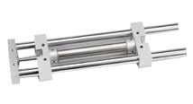 The “EZ” Series offers a cost effective linear ball bearing supported slide as it is supported via dual bearing blocks, but is driven by an integrated composite barrel pneumatic cylinder.